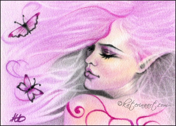 Aceo fairy butterflies, color pencil on watercolor paper ,2014.