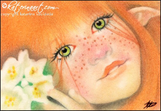 Irish Pixie Fairy with flowers.