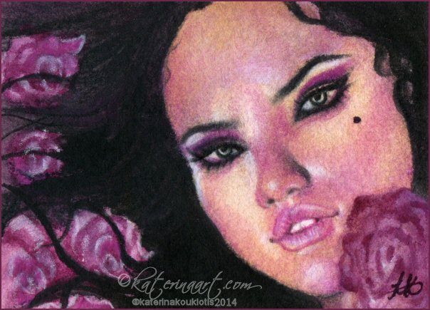Aceo watercolor fantasy portrait on watercolor paper ,2014.
