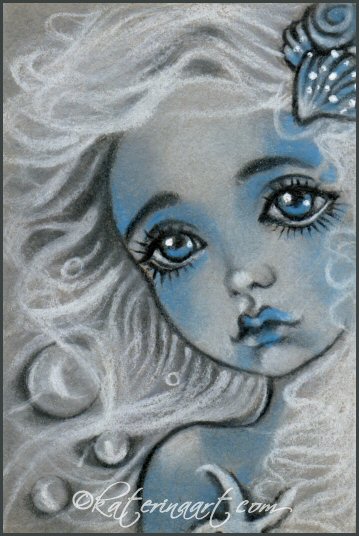 Tiniest mermaid drawing i have done so far measuring 2 x 3 a bit smaller than the standard ACEO,