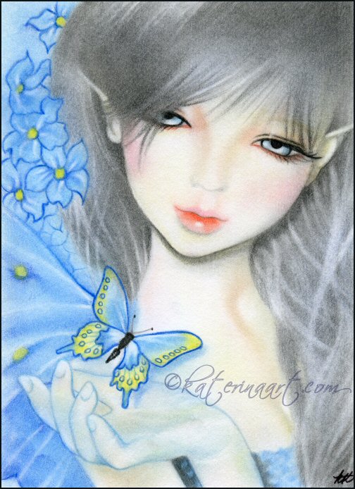 Forget-Me-Not flower Fairy with blue butterfly