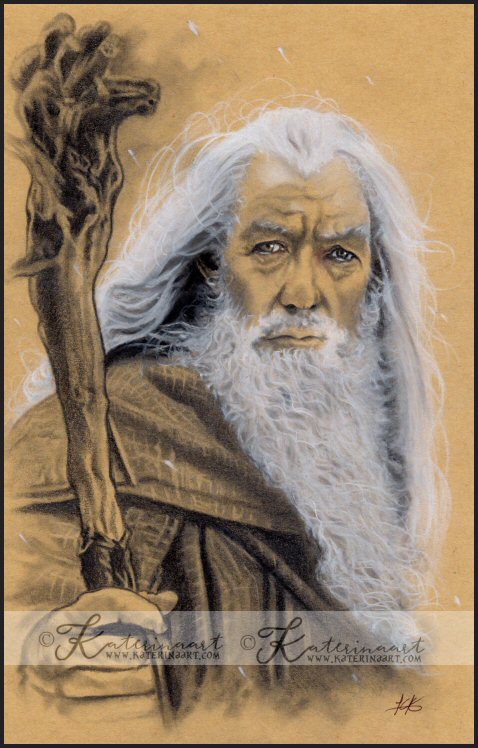 Fanart portrait drawing of Gandalf a wizard character from J.R.R. Tolkien's The Lord of the Rings and The Hobbit,.(Ian McKellen ) ,