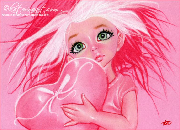 Little beauty with her precious heart in animation style of art.