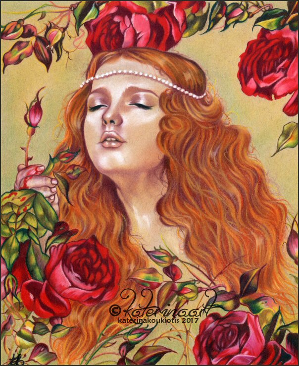 8.5 x 11 ,worked with caran_dache Luminance Color Pencils, Shimmering Accents added with Pan Pastels/Pearl-X powder for extra sparkly effect , On strathmore toned artist paper 2017