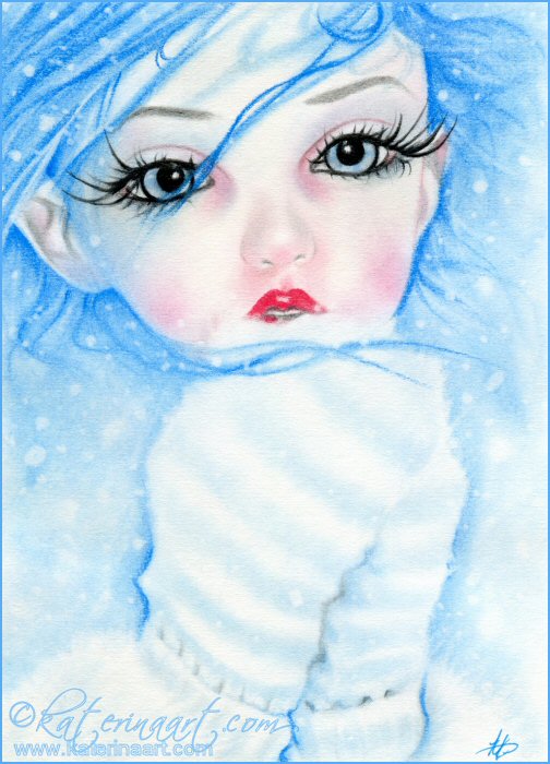 Elven beauty with blue hair and snowflakes in anime/manga style of art.