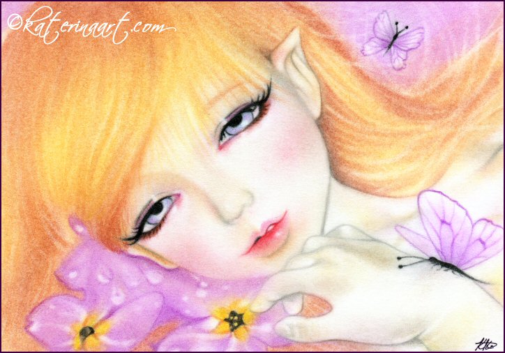 Spring Fairy with Violet flowers and butterflies