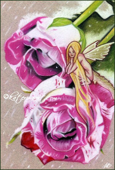 Little fairy among winter roses.